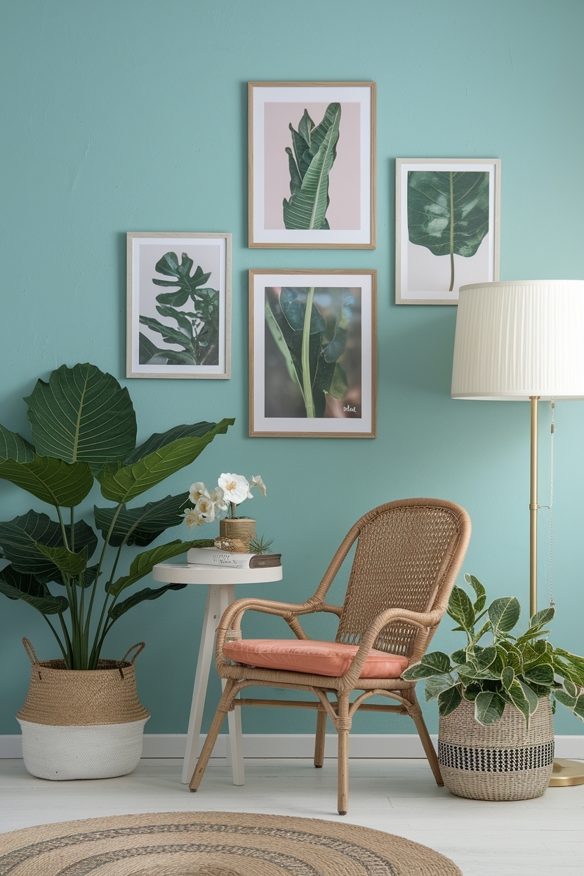 • Nature-Inspired: Create a calming vibe with botanical prints and natural wood elements.